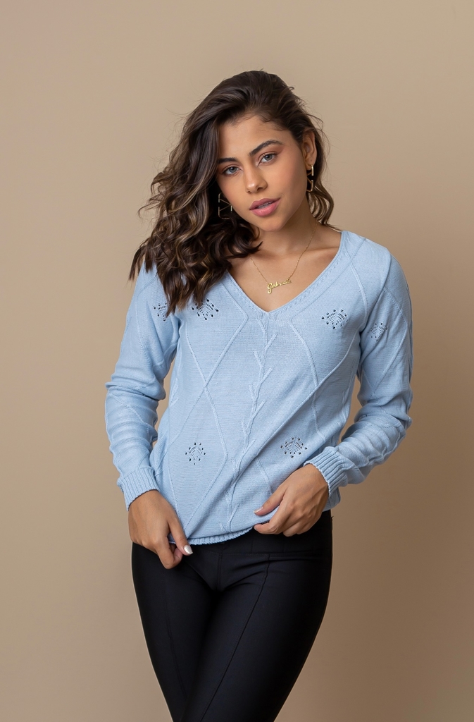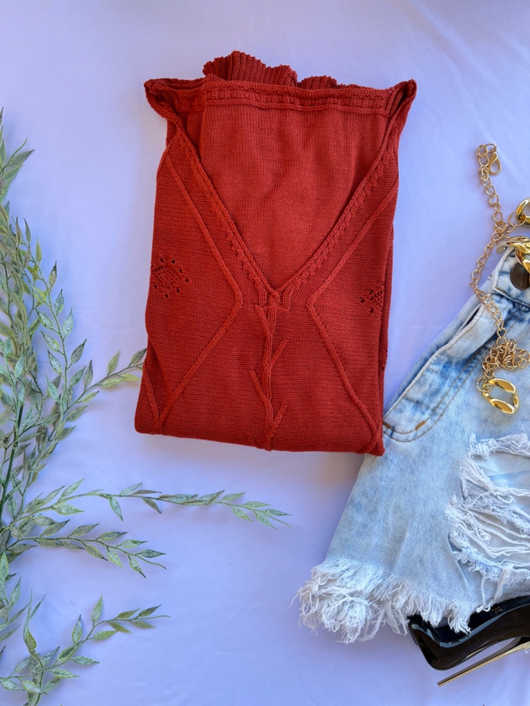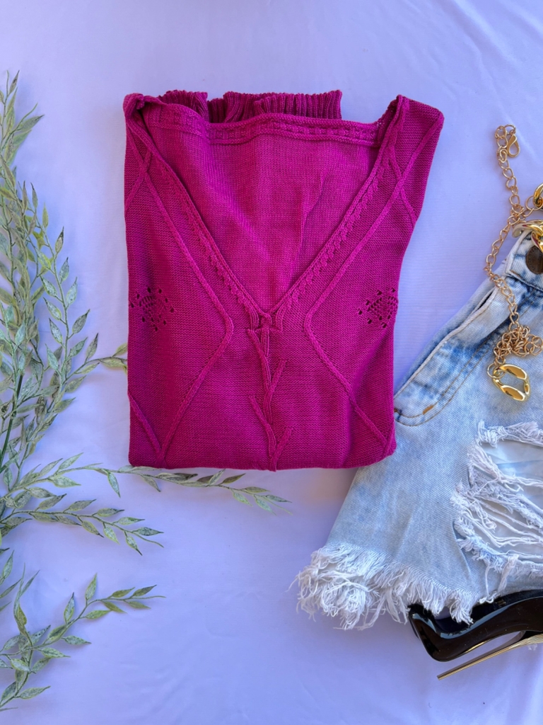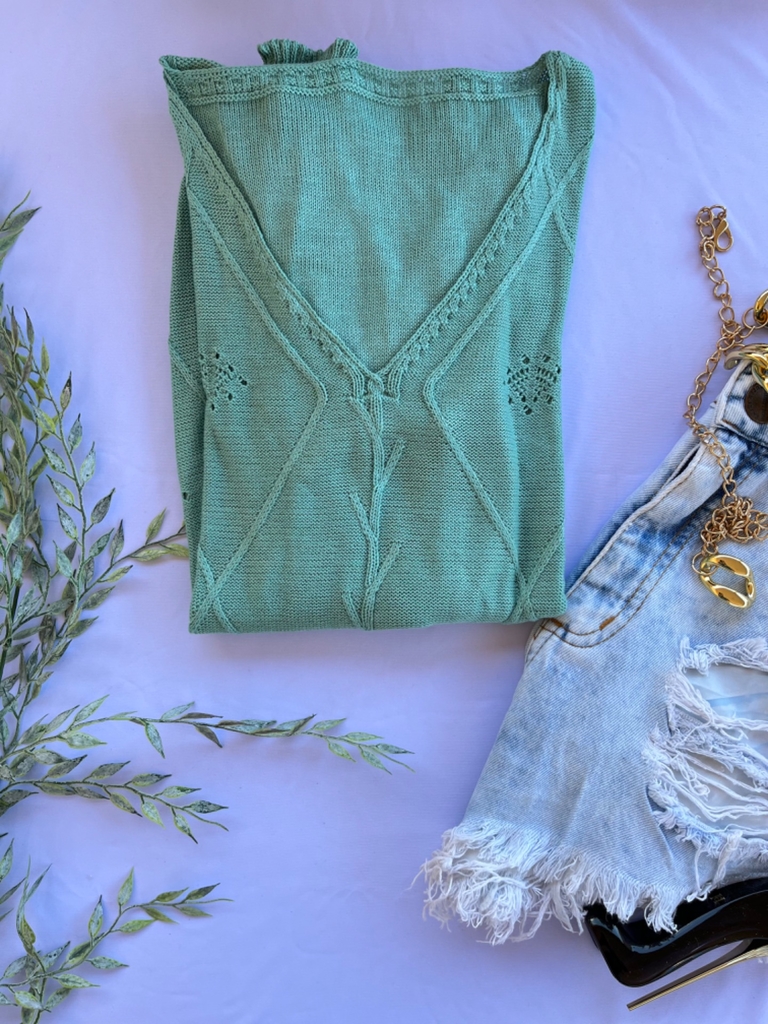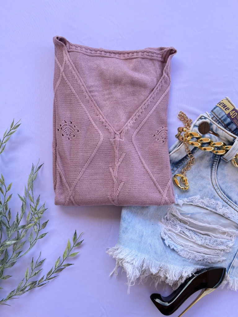 "As medidas acima podem variar em torno de 3 cm devido a malha do tricô."
