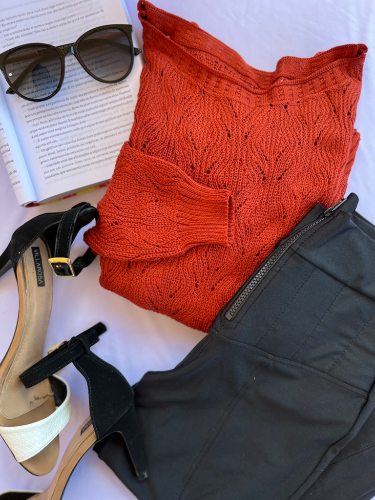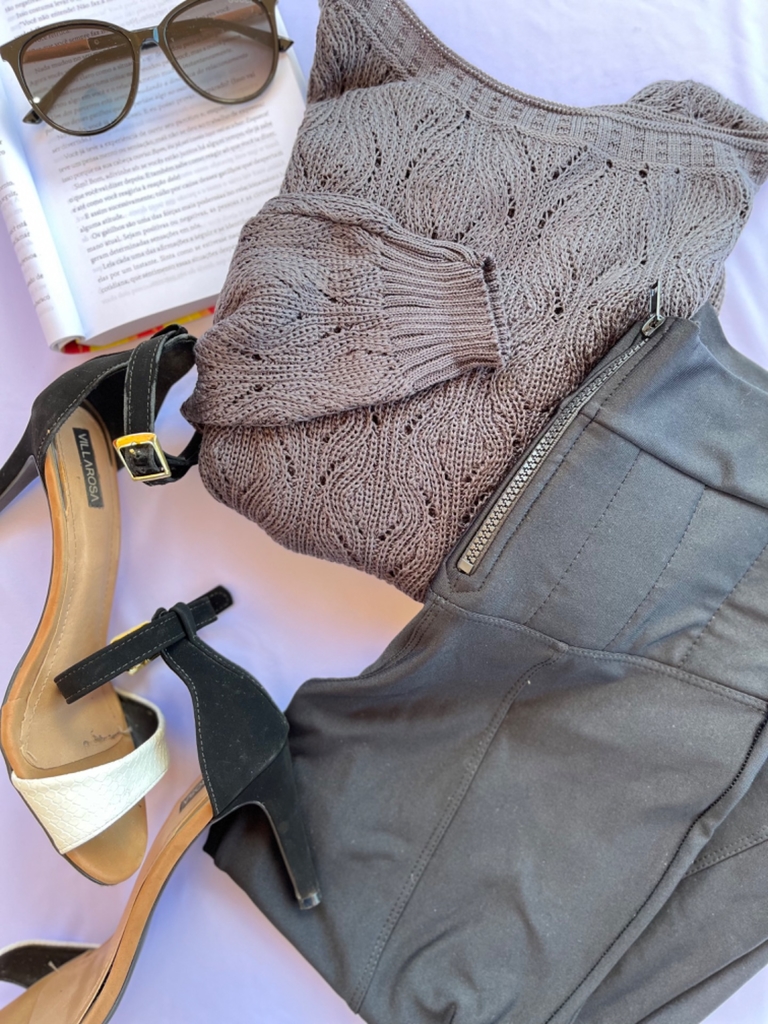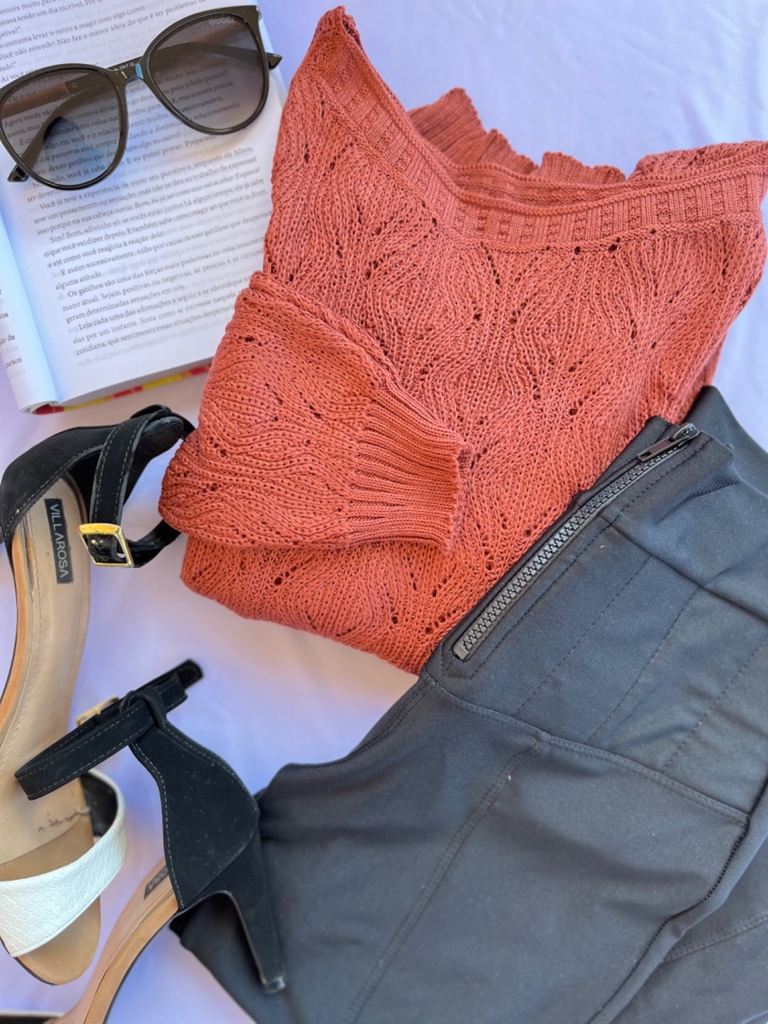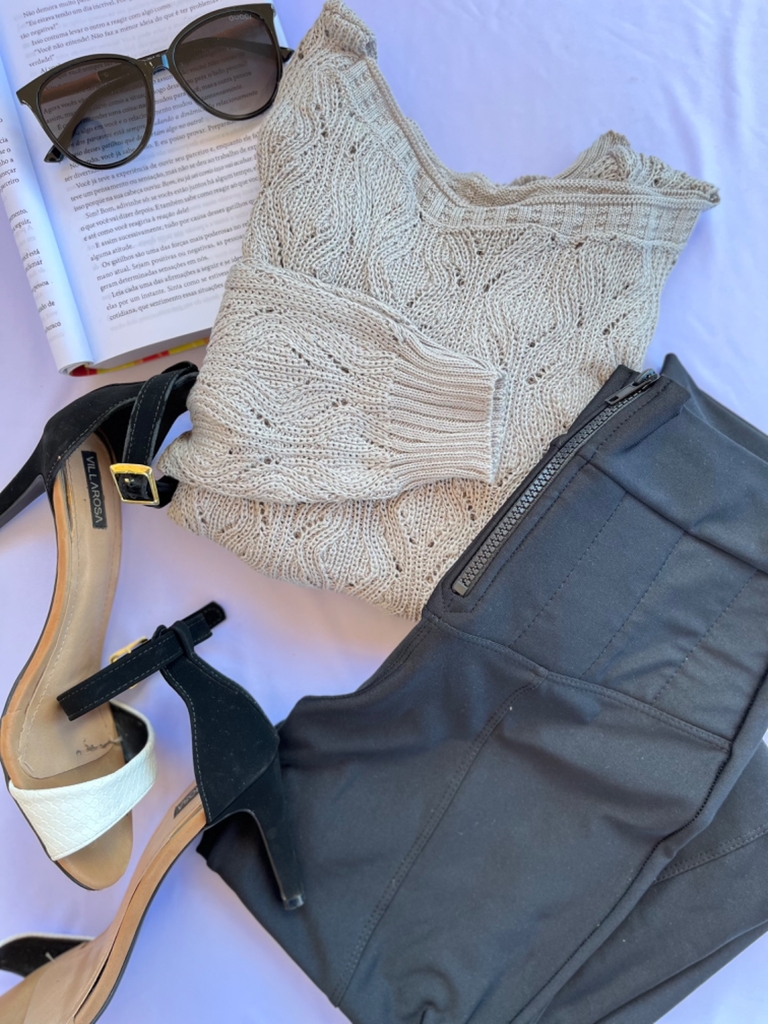 "As medidas acima podem variar em torno de 3 cm devido a malha do tricô."