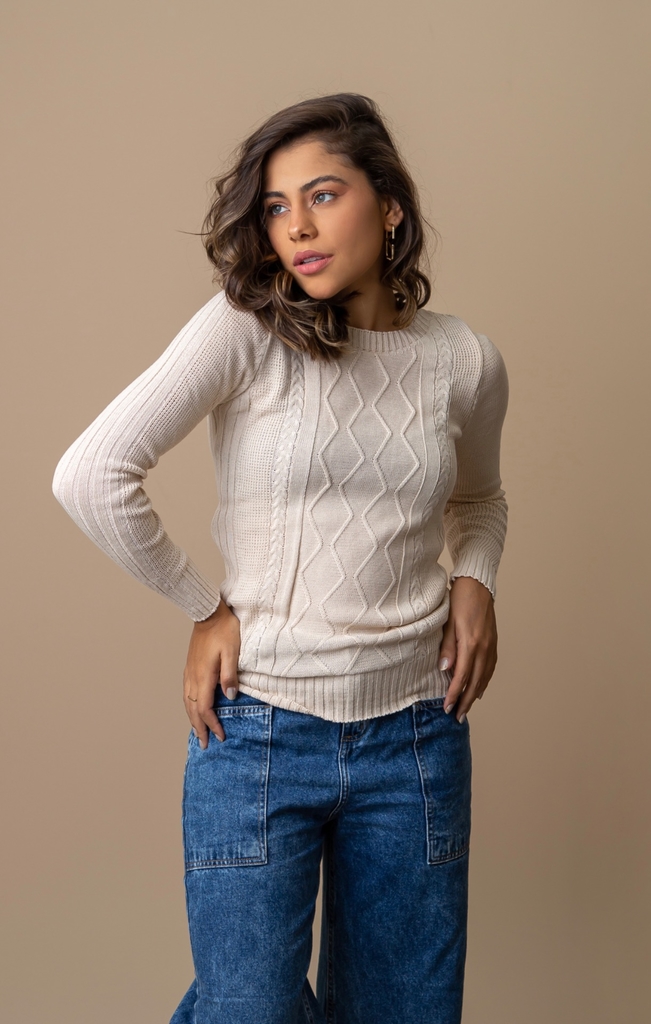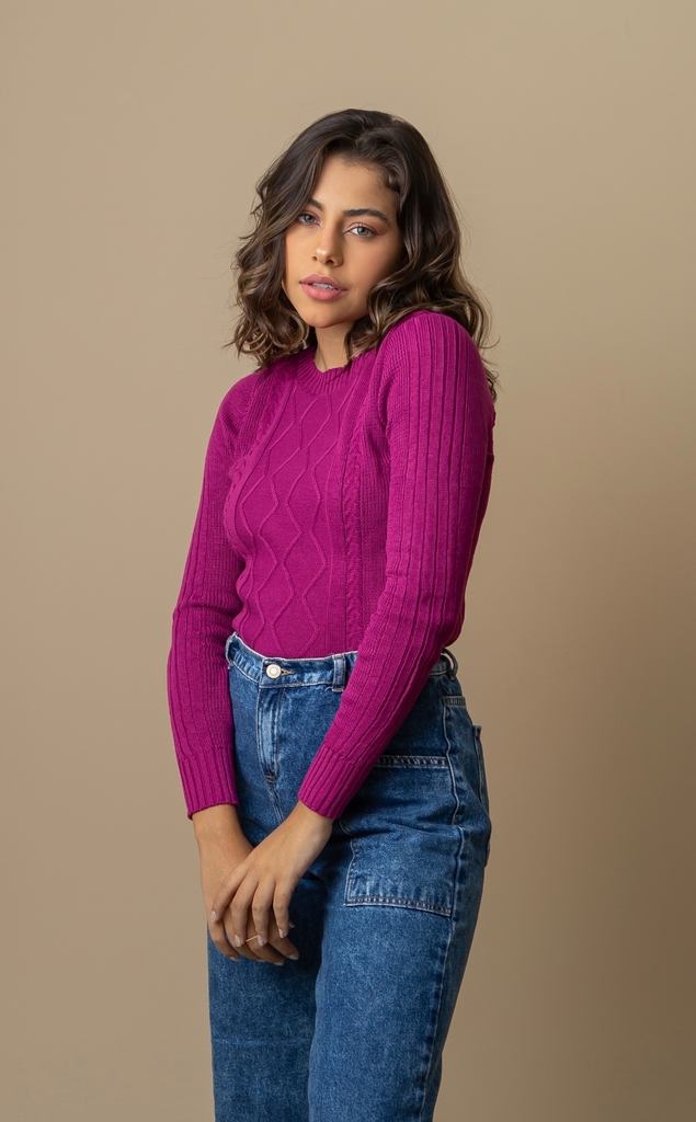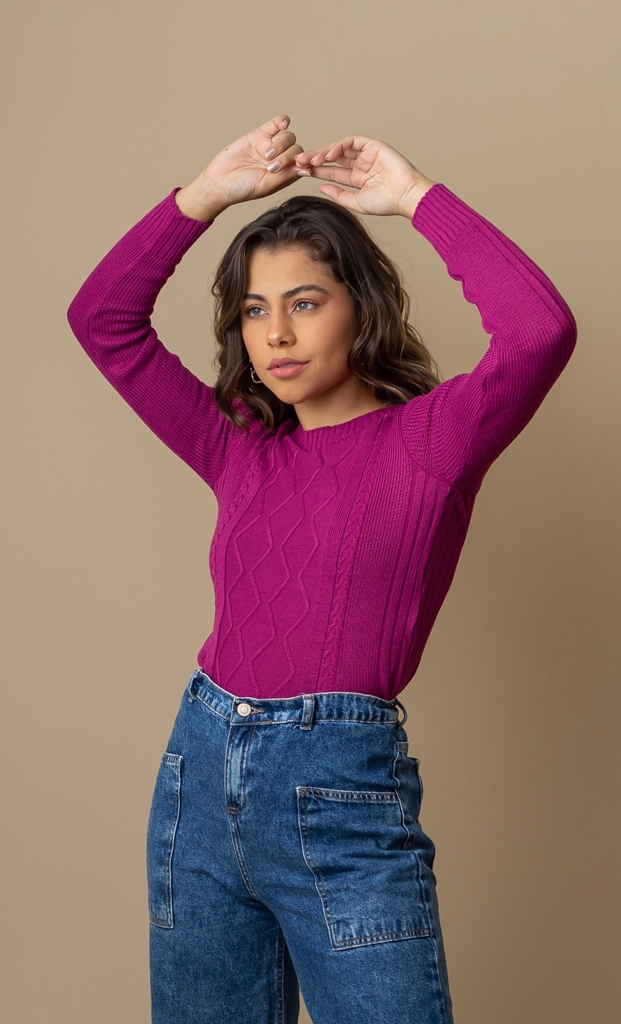 "As medidas acima podem variar em torno de 3 cm devido a malha do tricô."